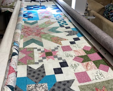 Mountain Top Quilting Studio is not responsible for any damage outside of our control. Quilts will be quilted in the condition they are received. If the quilt top is not square or the borders are too full, I will do my best to ease in as much as possible, but you can expect pleats or tucks in the finished quilt if there are large amounts of fullness in the quilt top. Quilting will not line up points or seams.